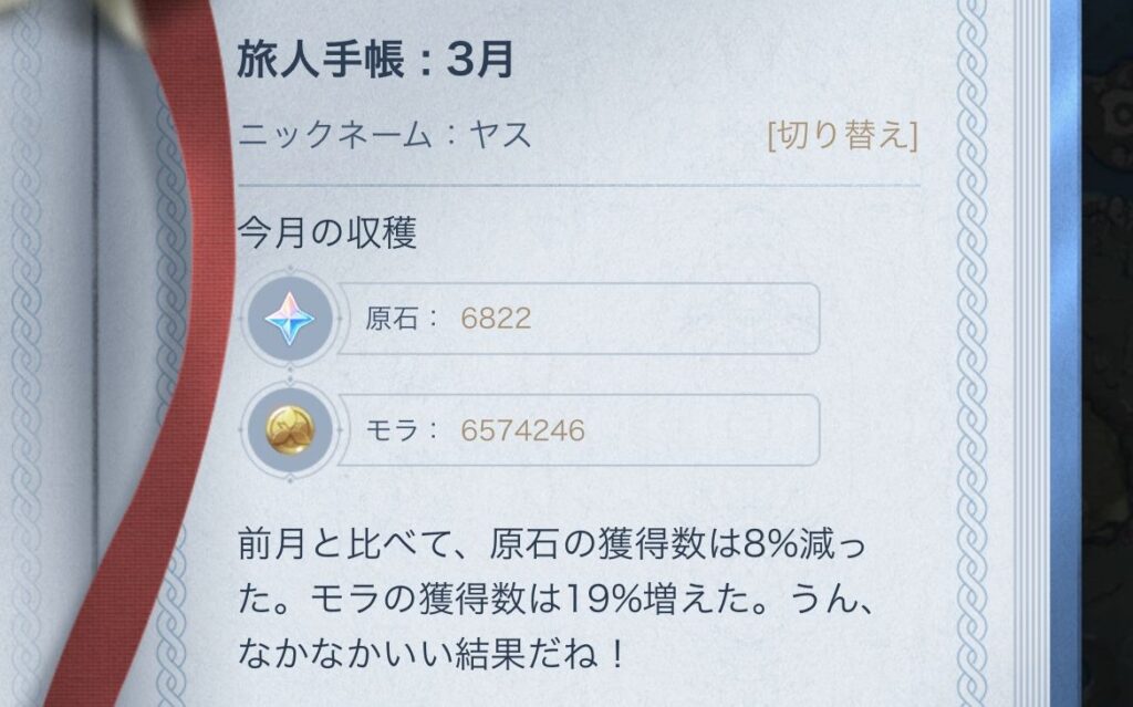 実際に無課金で獲得できる原石は、1か月で約7000原石程度です。